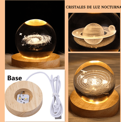 Bola de cristal grabada con láser 3D: Nuestra luz nocturna de bola de cristal viene con técnicas avanzadas de grabado láser 3D. La luz nocturna LED de bola de cristal 3D muestra varios temas como el sistema solar, asegurando que el cristal mantenga su brillo incluso después de un uso prolongado.