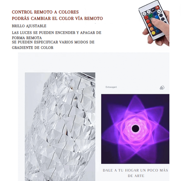 Agrega un toque de estilo y luminosidad a tu hogar con esta lámpara de mesa de cristal RGB.
